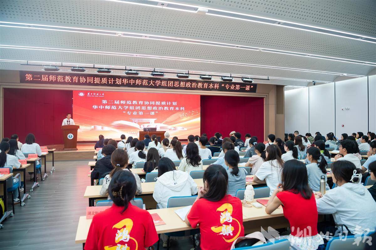 此次,来自湖北师范大学、贵州师范大学、黔南民族师范学院、南宁师范大学、汉江师范学院、遵义师范学院等协同提质计划兄弟院校的师生代表来到现场,和华中师大马克思主义学院新生同堂听课。270人共同聆听这堂生动的"专业第一课",省内外多所院校近2千名师生线上同步参与。